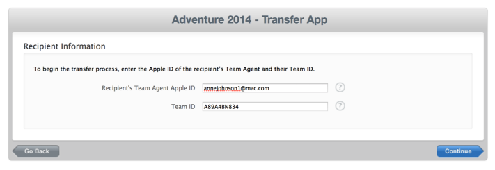 To allow the transfer request, the recipient Team Agent (aka the buyer) must provide his Apple ID and Team ID to the Team Agent who initiates of the transfer.