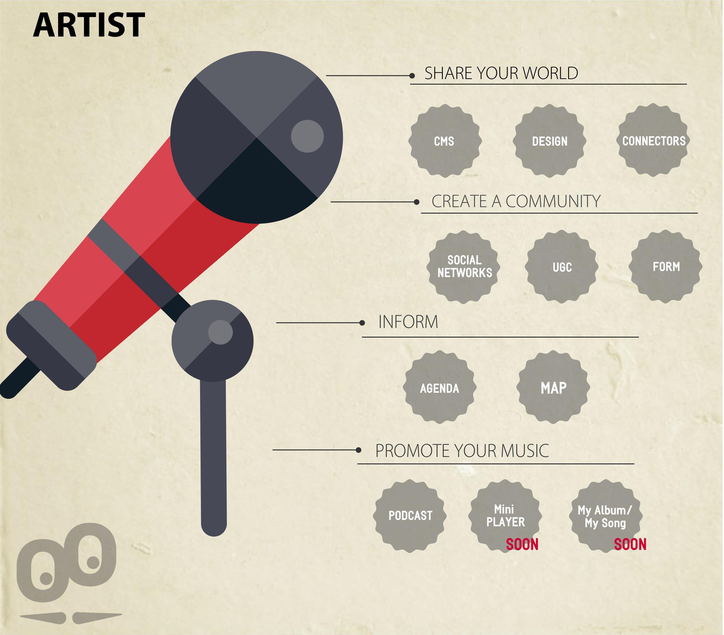 - Create a community: To become and continue to be popular, it's important to know how to create and maintain a community. This can obviously done by using social networks, but there are other ways to do this as well. Some examples include using a submission sections that allows fans to share content with the artist, or even a form section that can be used to create contests, for instance.
