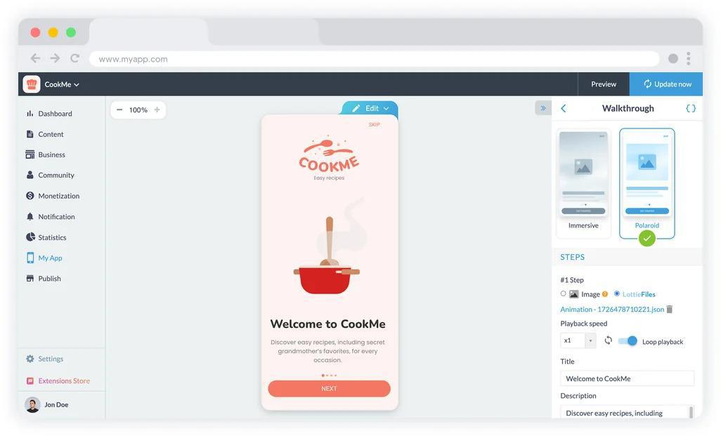 With GoodBarber's new LottieFiles extension, adding animations to your onboarding guide is incredibly easy. Here's how to do it: