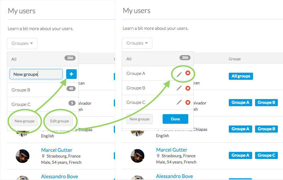 Once activated, GoodBarber will automatically redirect you to the My User > List menu where a green tab will show you where you can add a new group of users.