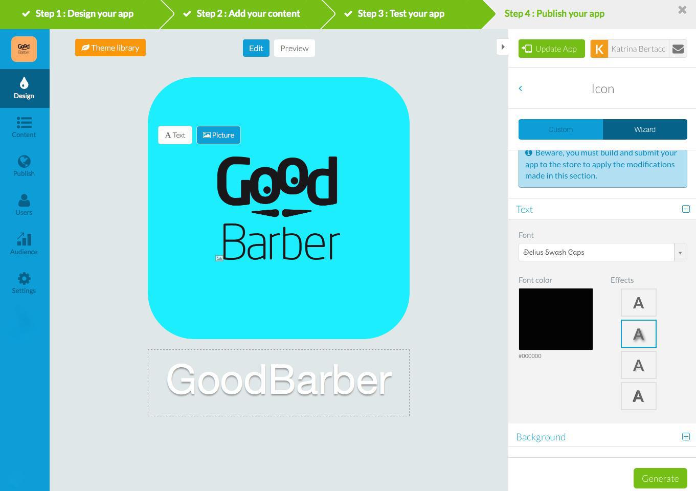 You can do all this without ever leaving the backend! You won't need any design or graphic programs anymore to create high quality icons and splashscreens because we offer everything that you need; you can personalize the text, add shading effects, upload images, choose the background color... It has never been easier to create personal and unique images!