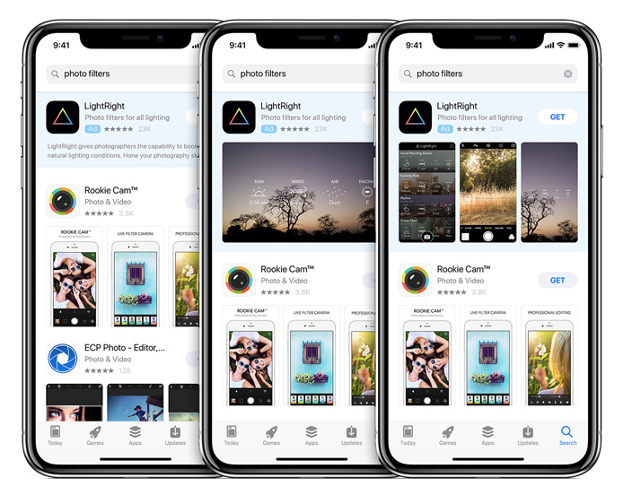 If you have decided to invest part of your budget in advertising, you must consider buying ads in the Stores. Each platform has its own advertising system. With iOS, ads appear depending on the metadata (see 2.5) in the search pages. 2 programs are available: Basic (up tp $10,000/ month) and Advanced. Even if you buy advertising, you have to configure your selection criteria because the more relevant you are, the more you will appear in the results. And you have to keep in mind that Apple usually only shows one ad. Hence the importance of being efficient.