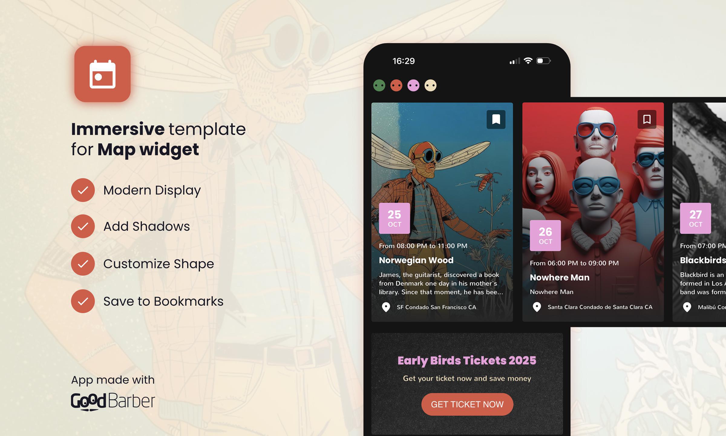 The Immersive Card Banner template, already popular for Map widgets, is now available for Agenda widgets. Showcase your events in an elegant and dynamic way with a modern interface and customization options designed to captivate your users.