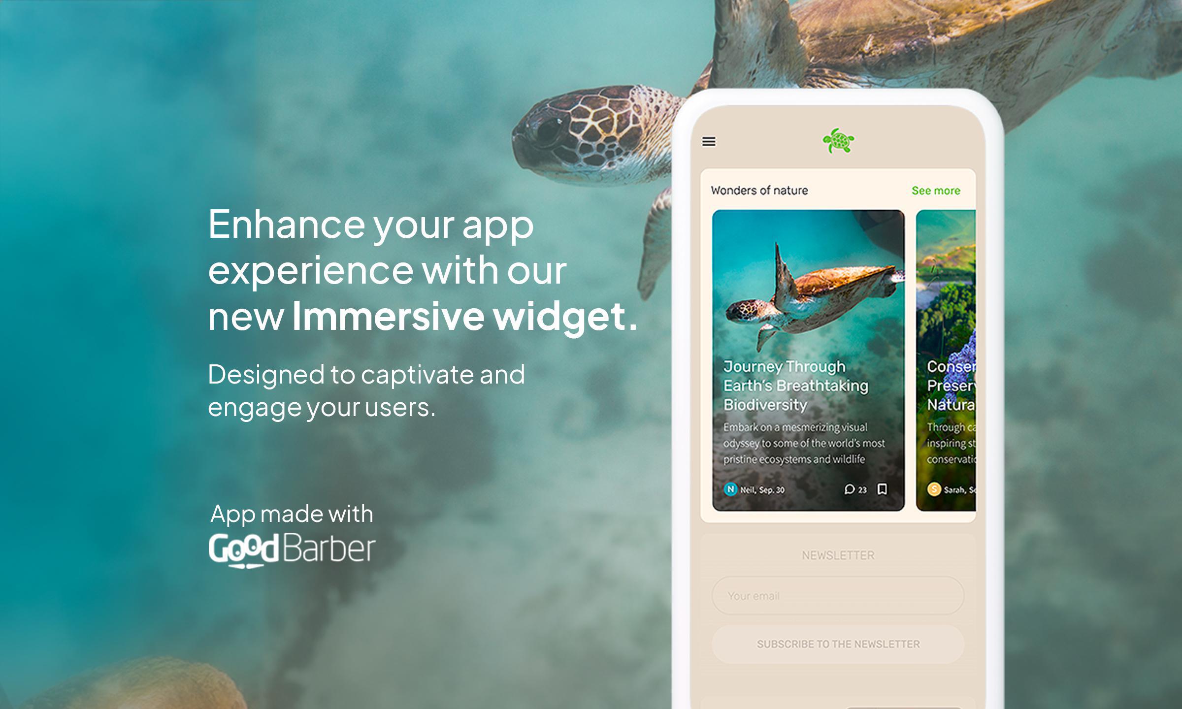 At GoodBarber, we continually push the boundaries of innovation so that your success is ours too. The Immersive Card Banner is another step towards a horizon where every interaction counts. Get started now and watch your content rise to unprecedented heights of engagement and beauty.