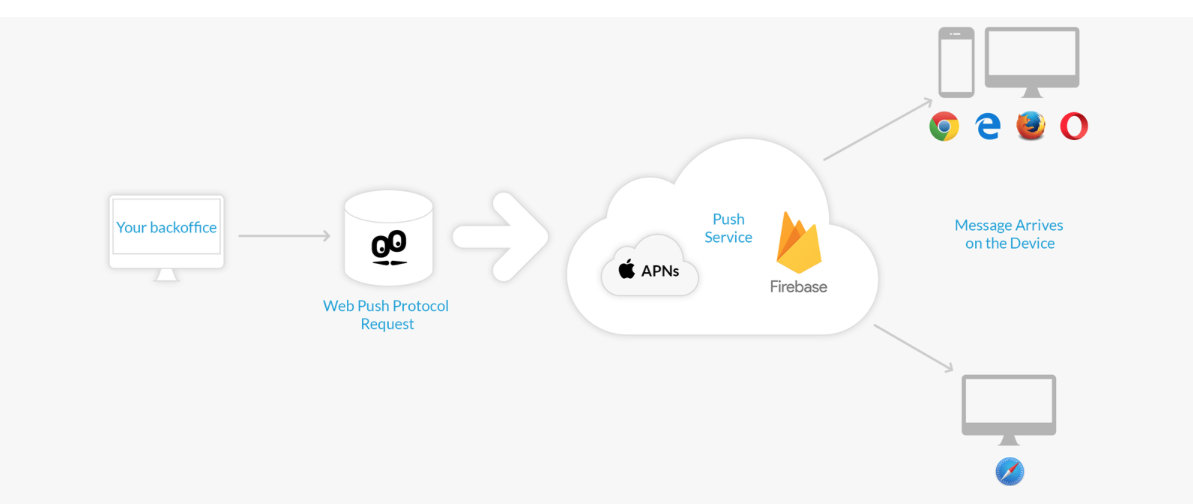 In GoodBarber's case, a specific service called FireBase is what we use to manage and display push notifications via Service Workers.