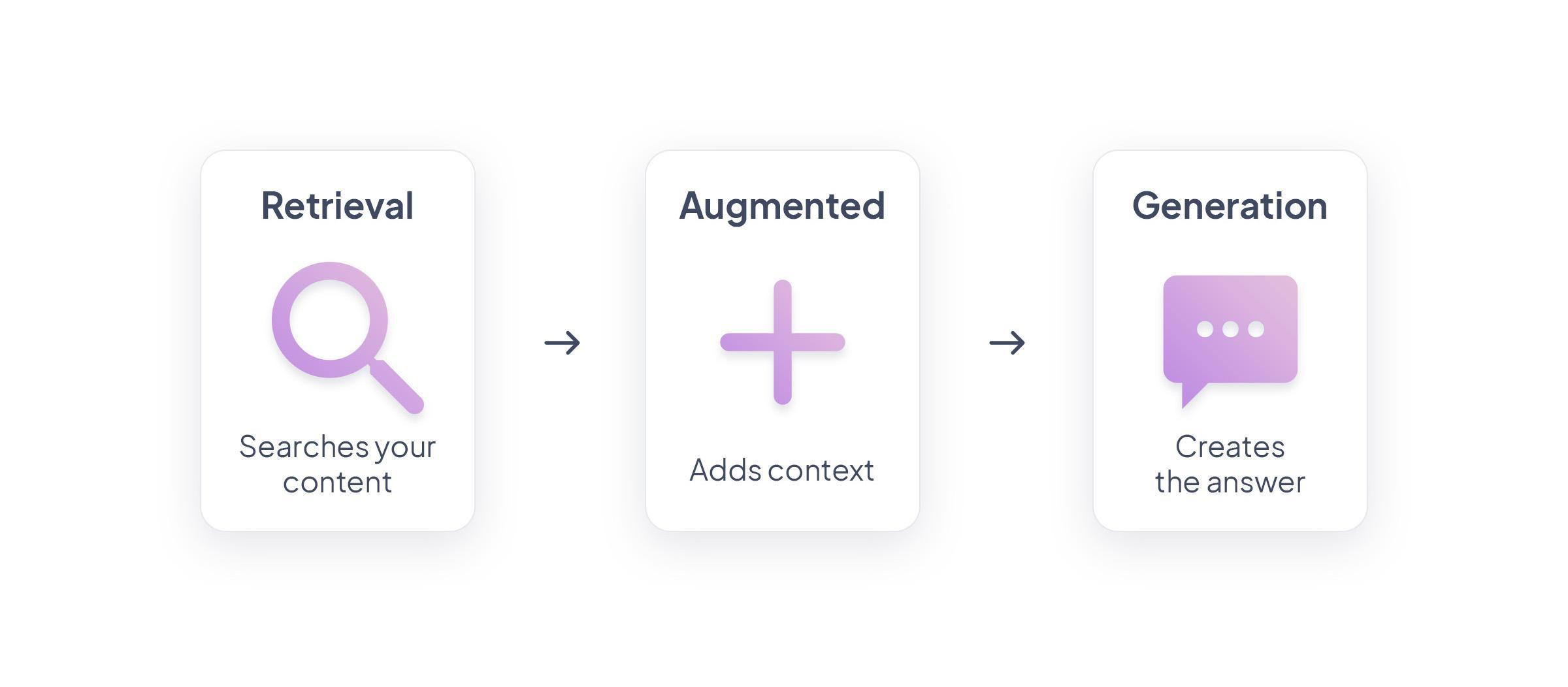 RAG, which stands for Retrieval-Augmented Generation, is an AI technique that allows a chatbot to answer questions by relying directly on existing content, rather than on a general-purpose memory. In the case of RAG Chatbot, this content comes from what you’ve already published in your app.