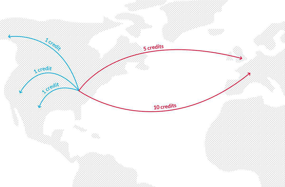 To reflect the difference in prices between the different countries, the cost of sending an SMS is associated with a certain number of credits. 1 credit corresponds to the lowest possible cost to send an SMS. Sending an SMS can cost 1 credit when sent to a certain country, but 10 credits when sent to another.