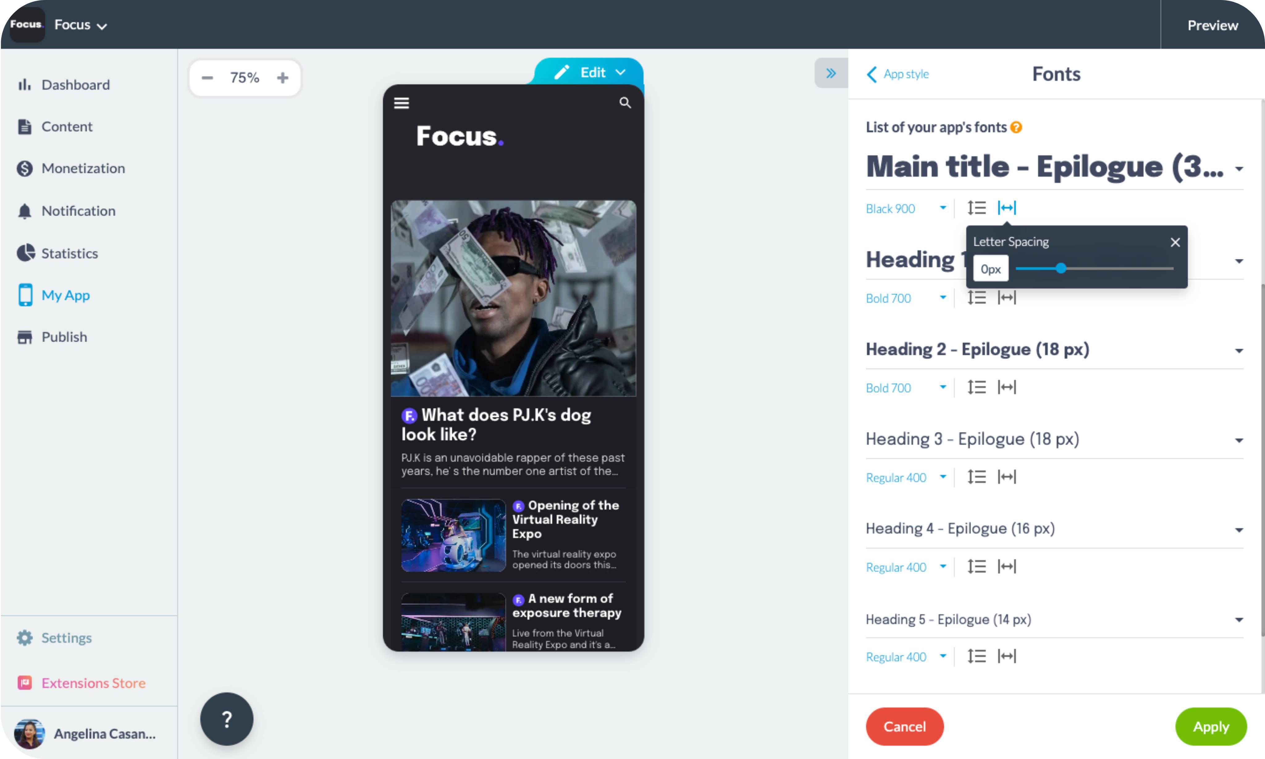 Whether you're designing a content app, a shop or an event app, these adjustments let you personalize the look of your texts even further.
