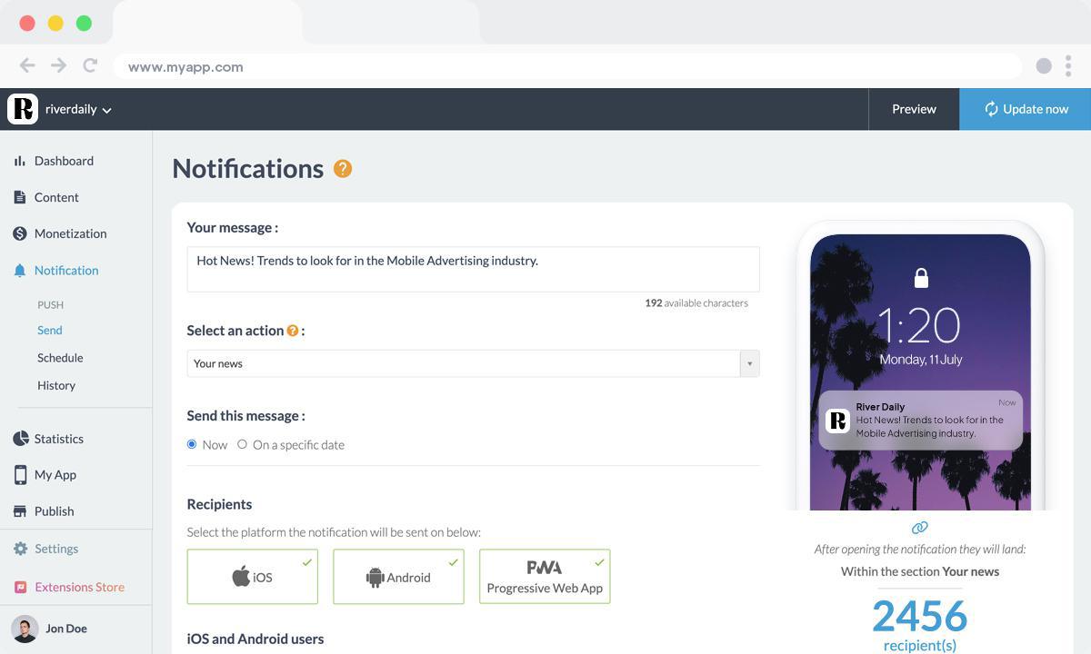 A few days ago, along with the release of our new line of PWA products, we published some new features. Amongst them is the option to now send push notifications to Progressive Web App users.