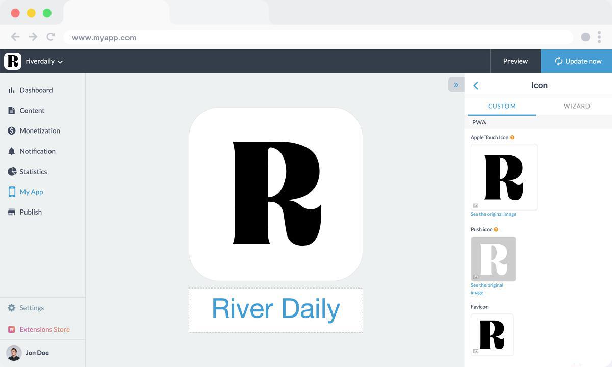 From the user's side, the notification will be displayed on their device. The visual elements in the notification are customizable from the page My App > Icons.